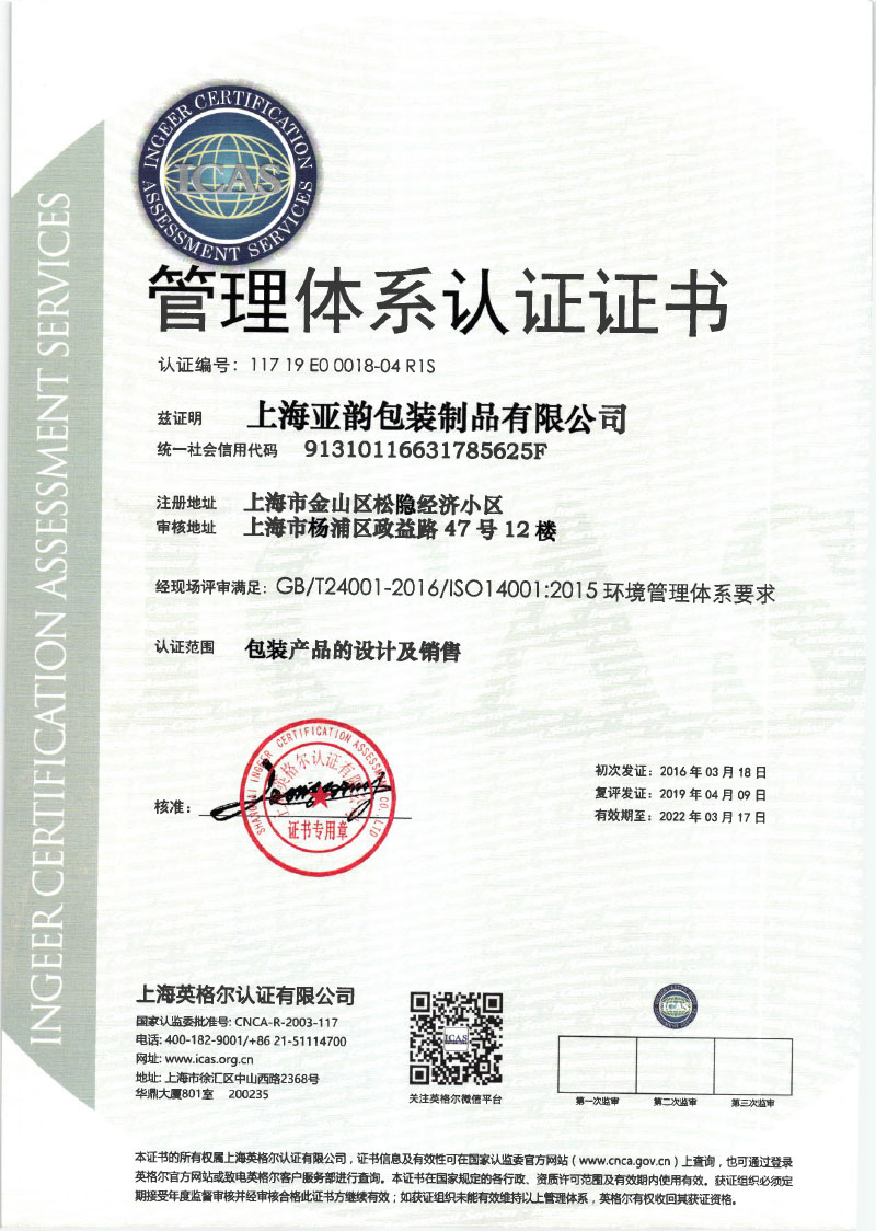 已通過ISO9001質量管理體系認證和ISO14001環境管理體系認證。